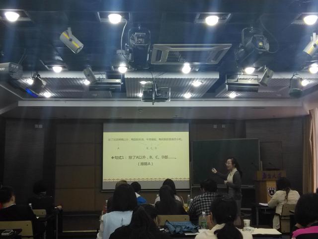 4月23日,选手分组参加了教学技能比赛。比赛以“说课+教学展示+教学反思”的形式进行,赛前参赛选手须从大赛指定的十篇教学材料中自由选择参赛篇目, 以完整的一课为单位设计教案、制作课件,教学对象为综合国籍员工。评委根据评分细则从教学设计的科学性、教学过程的安排、教学技能、教态、板书等多方面对选手进行成绩评定。经过激烈的角逐,最终我系选手陆贝怡、余梦静获得优胜奖。