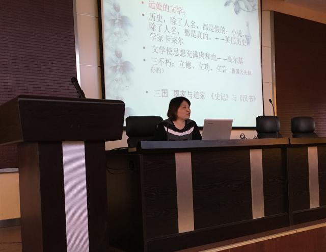 最后,中国语言文学系副主任白朝晖老师介绍了中文专业的研究方向与培养模式,她别出心裁地以“作为文学、皈依文学、文学之花”三个篇章为大家带来不同的讲演。通过她的介绍,同学们了解到中文隶属于人文科学,其具体研究方向包括汉语言文学、语言学、文艺美学、文艺学等。同时,白老师展示了中文系名师风采及优秀毕业生,重申“以虔诚的热情授课”的教学理念,并以“皈依文学,通向人生”作为结语,给同学们留下深刻印象。